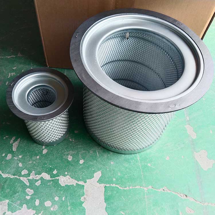 油氣分離元件是決定空壓機壓縮空氣品質的關鍵部件,高質量的油氣分離元件不僅可保證壓縮機的高效率工作,且濾芯壽命可達數千小時。從壓縮機頭出來的壓縮空氣夾帶大大小小的油滴,大油滴通過油氣分離罐時易分離,而小油滴(直徑1μm以下懸浮油微粒)則必須通過油氣分離濾芯的微米級玻纖濾料層過濾。油微粒經過濾材的擴散作用,直接被濾材攔截以及慣性碰撞凝聚等機理使壓縮空氣中的懸浮油微粒很快凝聚成大油滴,在重力作用下油凝聚在油分芯底部,通過底部凹處回油管進口返回機頭潤滑油系統,從而使壓縮機排出更加純凈無油的壓縮空氣。壓縮空氣中的固體粒子經過油分芯時滯留在過濾層中,這就導致了油分芯壓差(阻力)不斷增加。隨著油分芯使用時間增長,當油分芯壓差達到0.08到0.1Mpa時,或者壓縮空氣出口產生明顯的含油量時,濾芯必須更換,否則增加壓縮機運行成本(耗電或耗油)。