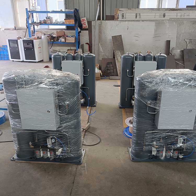 制氮機是一種以空氣為原料,通過物理方法分離氧和氮而獲得氮氣的設備。根據分類方法的不同,工業上應用的制氮機可以分為深冷空分法、分子篩空分法(PSA)和膜空分法三種。制氮機是按照變壓吸附技術設計和制造的氮氣制取設備,以優質進口碳分子篩(CMS)為吸附劑,采用常溫下變壓吸附原理(PSA)分離空氣制取高純度氮氣。通常使用兩個吸附塔并聯,由進口 PLC 控制進口氣動閥自動運行,交替進行加壓吸附和解壓再生,完成氮氧分離,獲得所需高純度的氮氣。